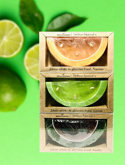 Elaborados con jabón de glicerina en sus tres presentaciones: limón, maranja y sandía. Beneficios: Humectante y lubricante para la piel. Decorativos. Ingredientes activos: Glicerina. Semillas naturales.